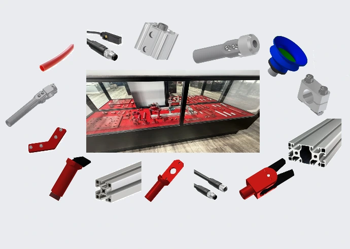 If you're looking for additional assemblies for your projects, look no further! Using sturdy profile we can build an assortment of simple structures. Such as carts for mobilizing your new EOAT from one of the shop to the other smoothly. And cases, for the purpose of demo and display, or to keep an automated arm in safe containment while in motion.